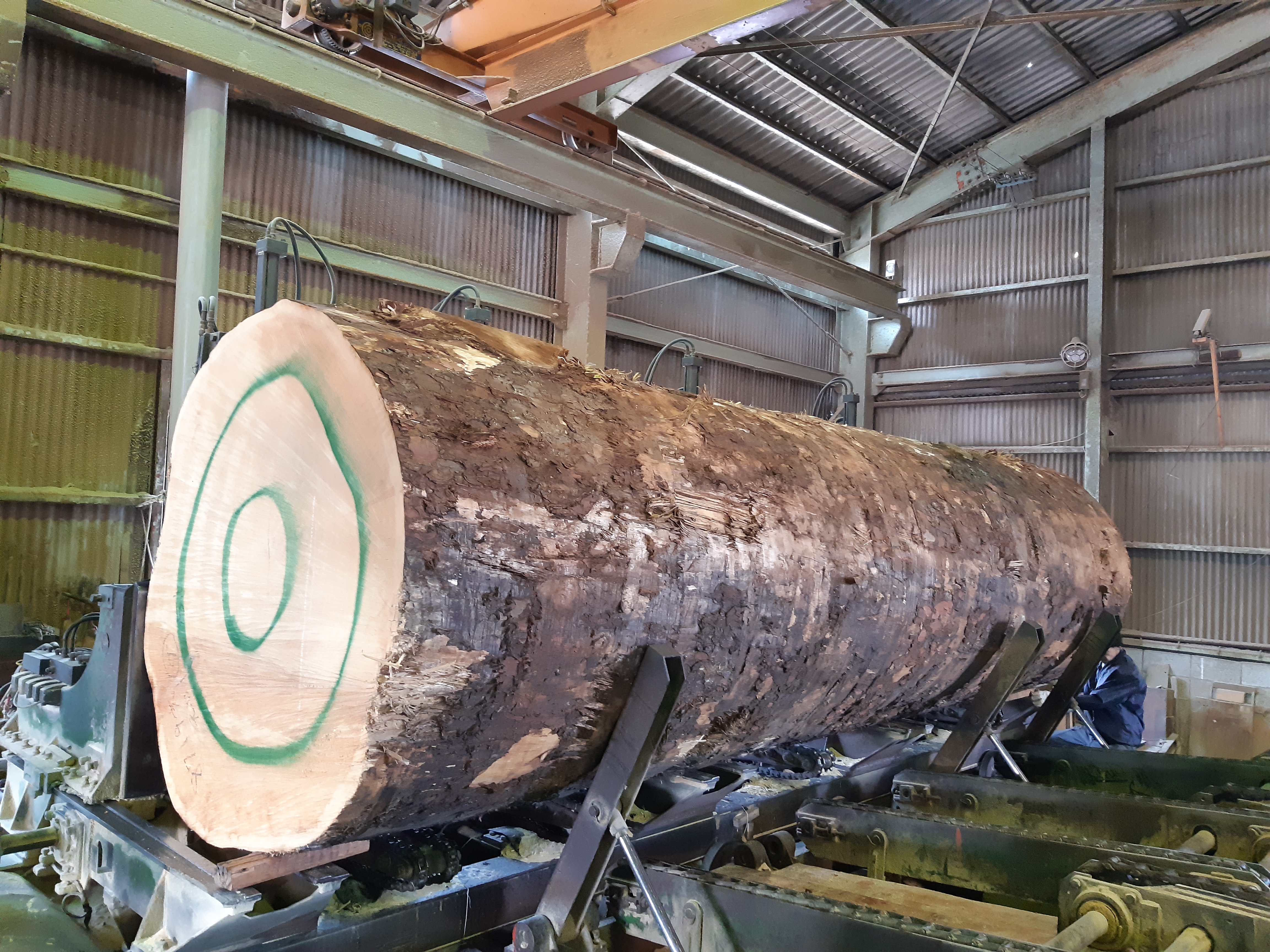 当社は丸太を玉切り、皮むきをして建具用材等の板材に挽く会社になります。